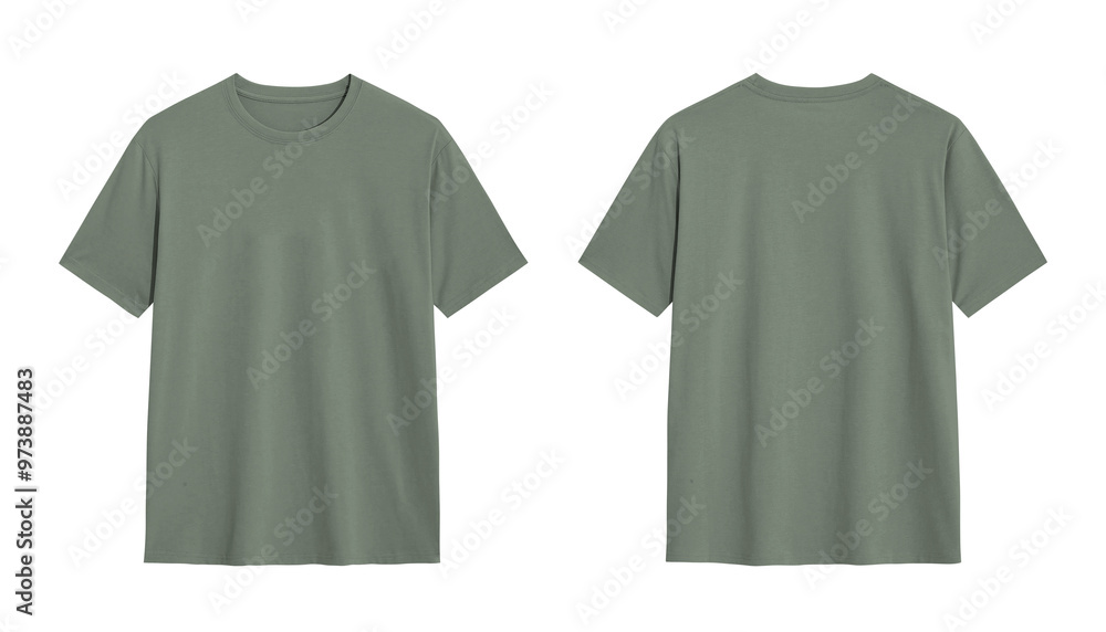 Front and back view of a blank green t shirt. Mockup for design and branding purposes.