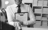 The Human Resources Manager shakes hands with people interested in applying for job vacancies good attitude Finding the right person for the position Human resources management concept.