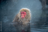 Monkey in a natural onsen (hot spring), located in Snow Monkey, Nagono Japan.
