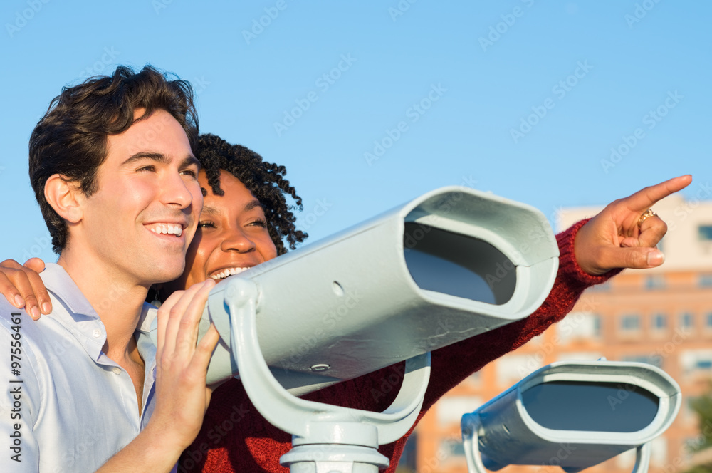 Young couple with binoculars