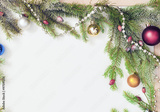 Christmas frame with Christmas ornaments and decorations