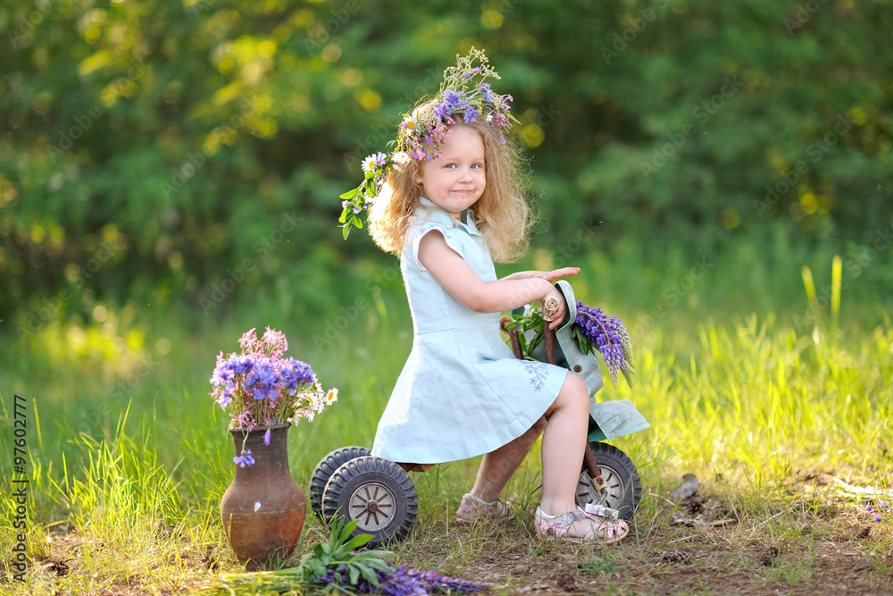 portrait of little girl outdoors in summer