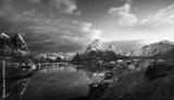 snow in Reine Village, Lofoten Islands, Norway
