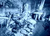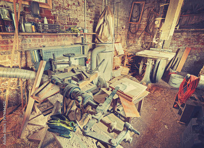 Vintage stylized old carpenter workshop interior