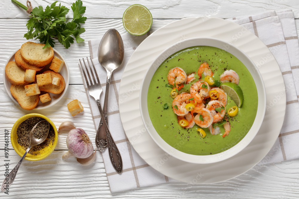 Shrimps in Culichi Salsa or Poblano sauce in bowl