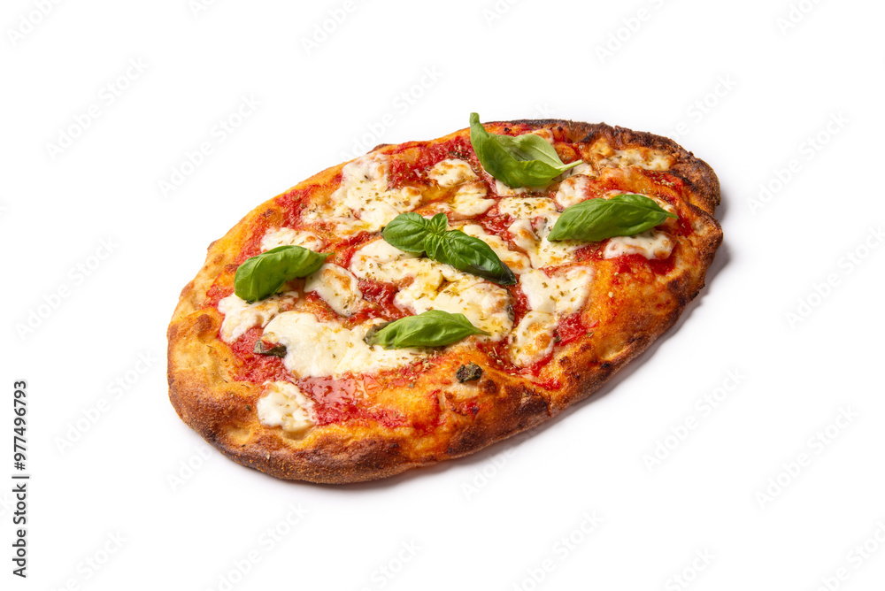 Deliziosa pinsa romana condita con mozzarella di bufala, pomodoro e basilico, cibo italiano