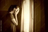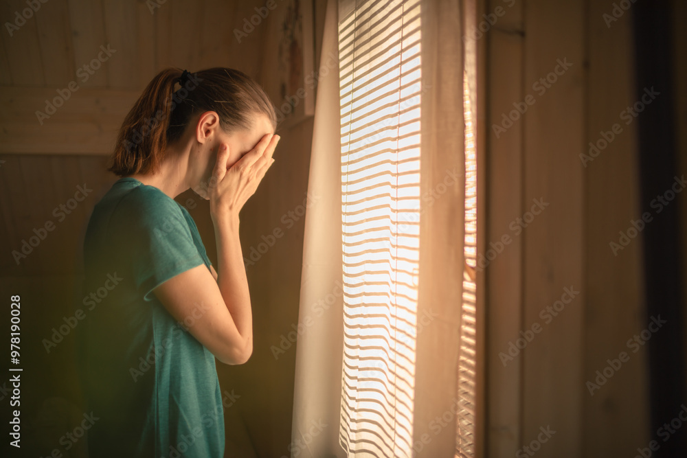 sad unhappy woman in her bedroom suffering from depression, stress, mental health issues