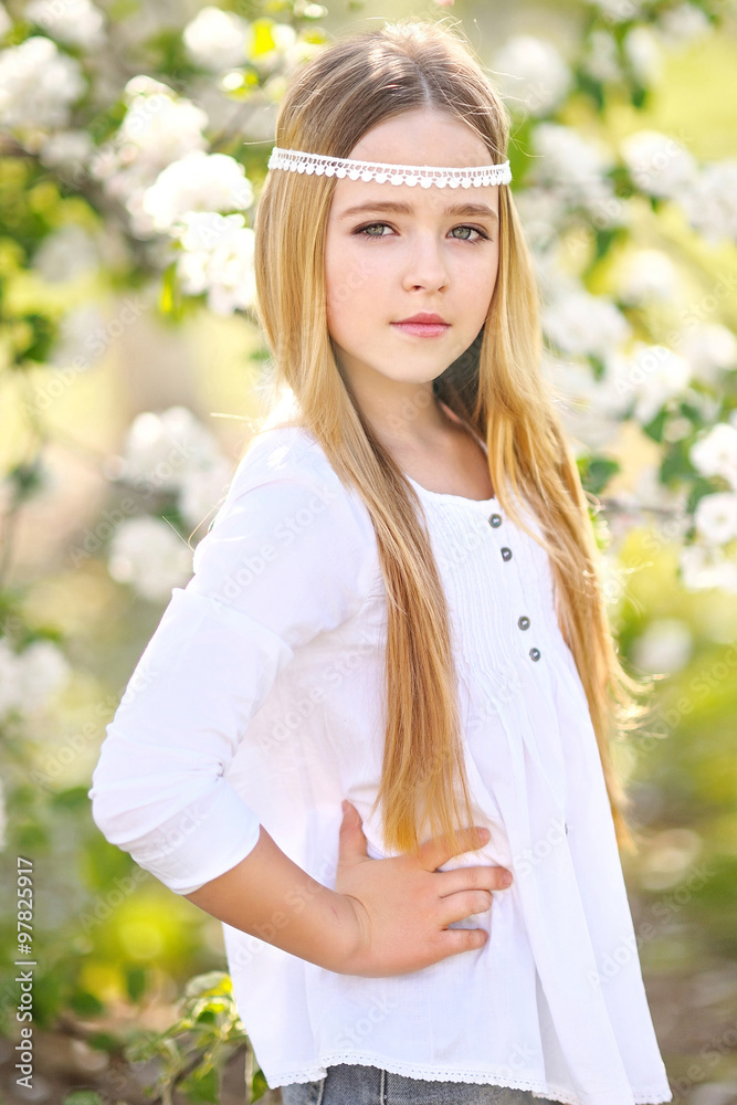 portrait of little girl outdoors in summer