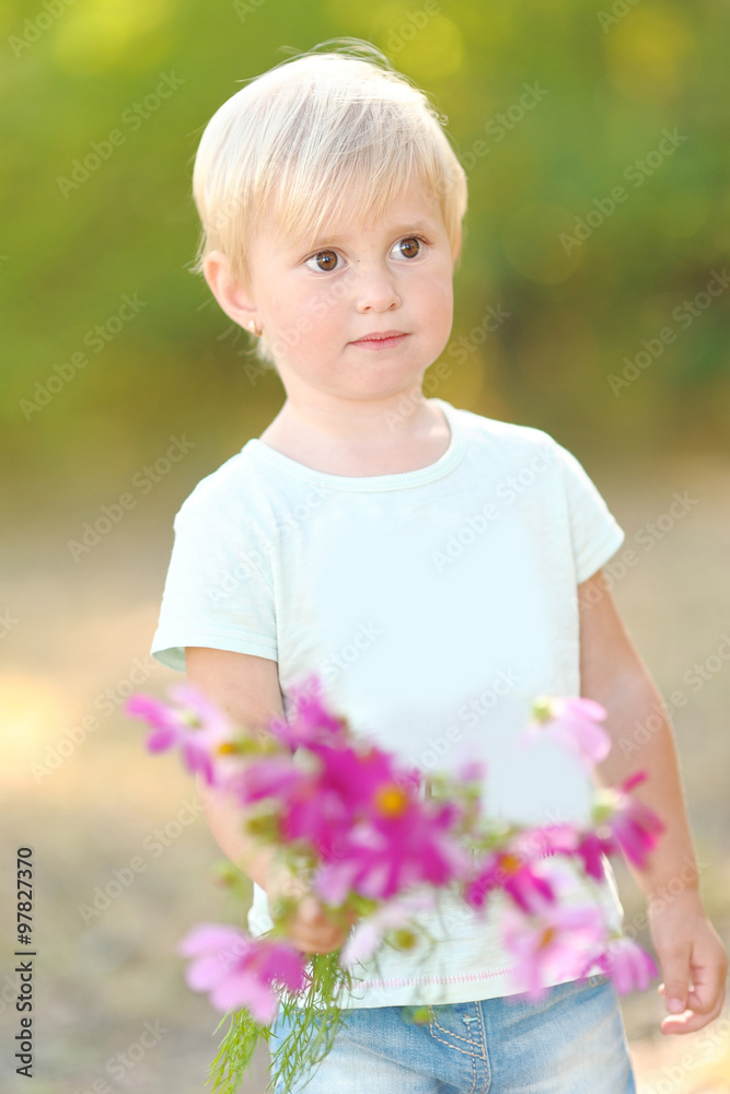 portrait of little girl outdoors in summer
