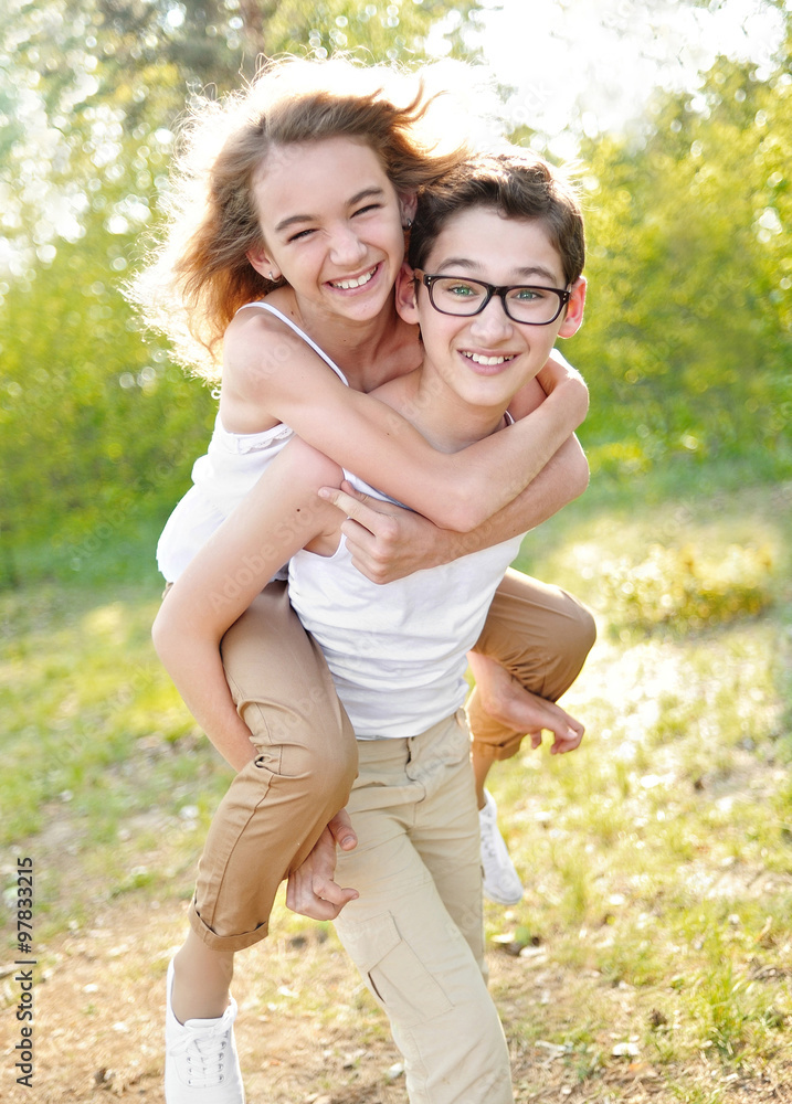Portrait of a boy and girl in summer