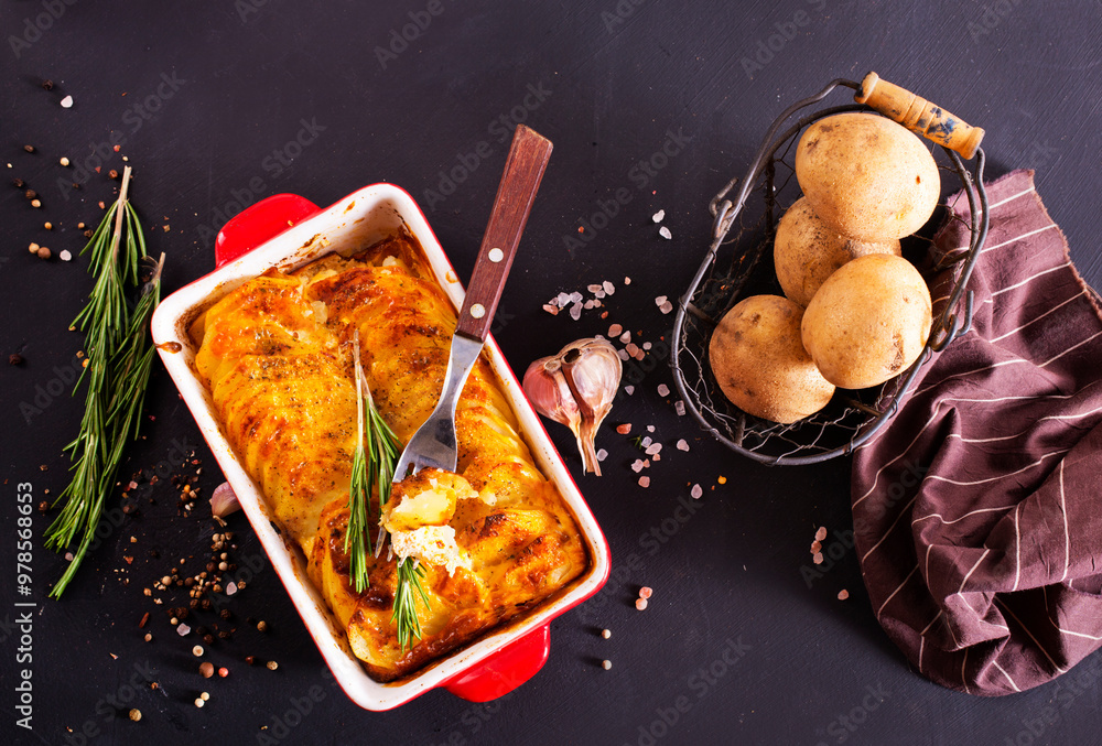Potato gratin - graten (baked potatoes with cream and cheese) .