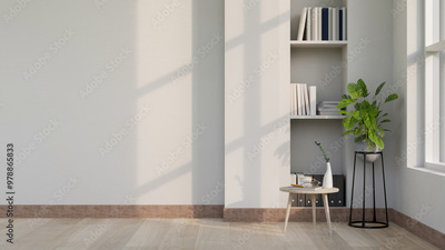 Luxurious contemporary white room features a space against a white wall and home decor.
