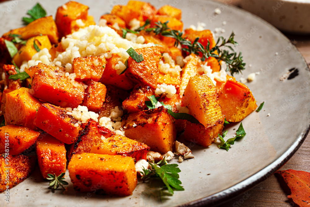 Warm autumn salad roasted pumpkin and parmesan cheese