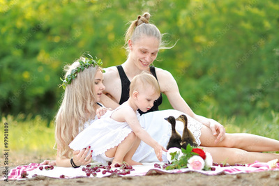portrait of a happy family in the summer on the nature