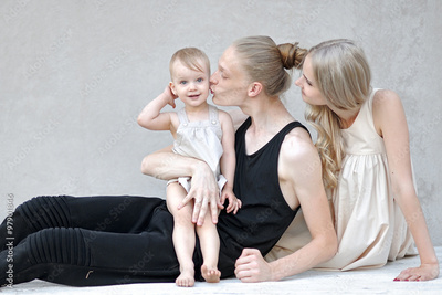 portrait of a happy family in the summer on the nature