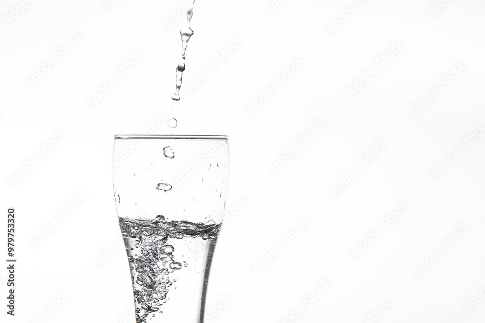Pouring water into a glass on a white background. Close-up image,Glass of drinking water isolated on white background