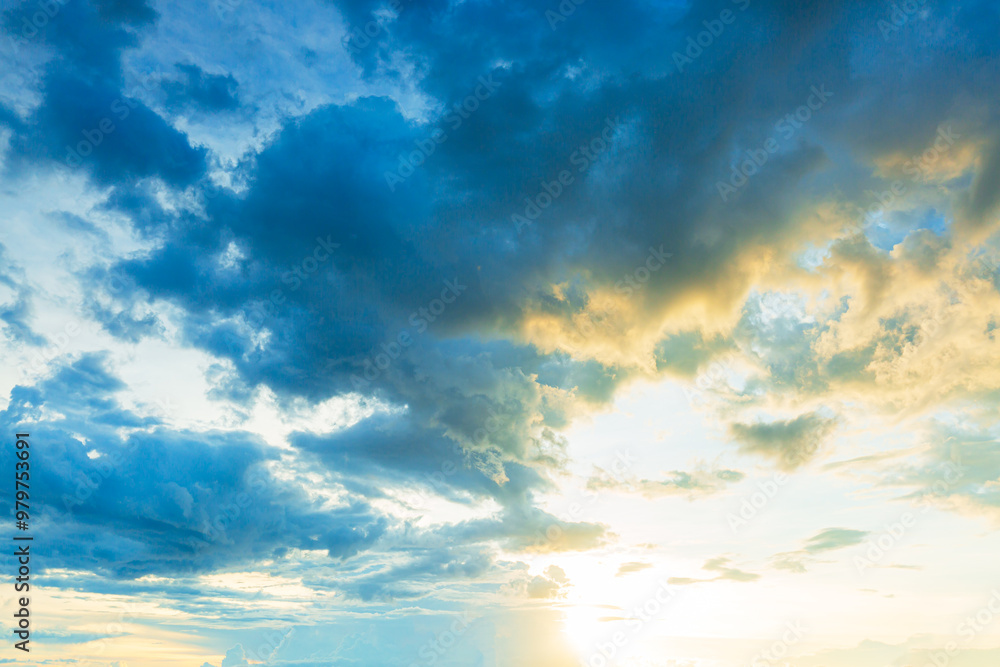 Clouds and sky in the morning,Beautiful of luxury soft gradient orange gold clouds and sunlight on the blue sky perfect for the background, take in everning,Twilight