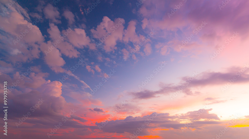 Colorful clouds and sky,Dusk, Sunset Sky Clouds in the Evening with colorful Orange, Yellow, Pink and red sunlight and Dramatic storm clouds on Twilight sky,