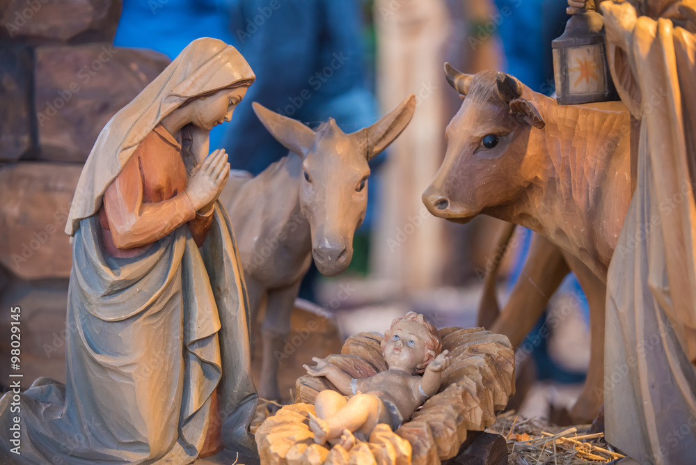 Krippenfiguren aus Holz, Weihnachtsgeschichte