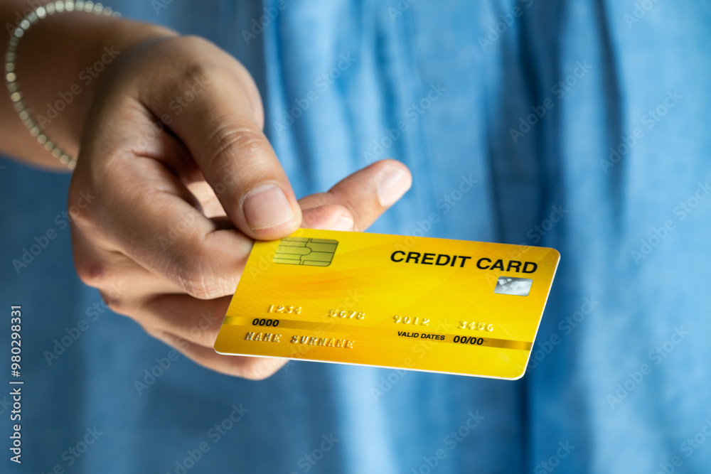 Man holding credit cards and he is choosing a credit card to pay and spend Payment for goods via credit card. Finance and banking concept
