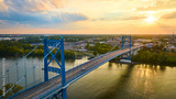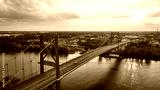 Aerial View of Toledo Blue Suspension Bridge at Golden Hour