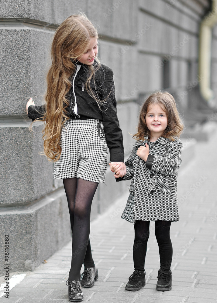 portrait of two girls of girlfriends on a summer nature