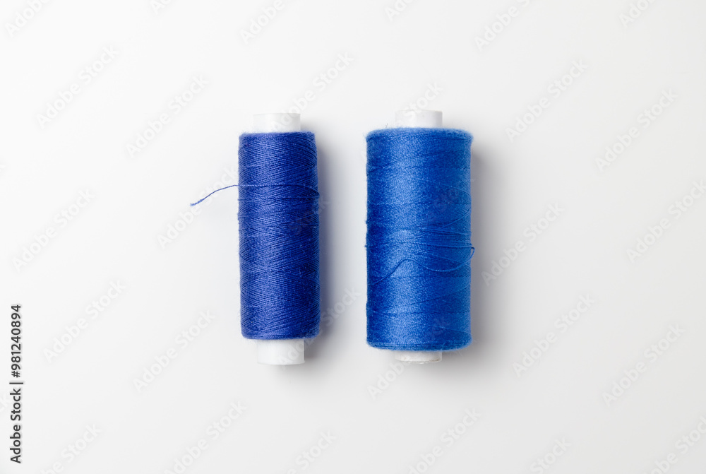 Blue thread spools on white background.