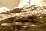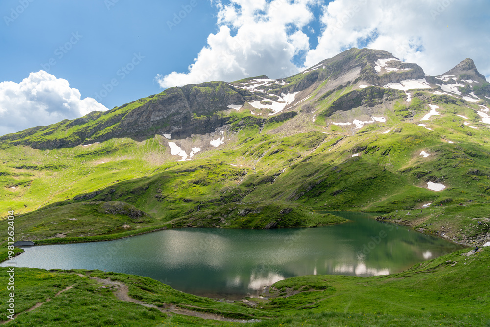 Lake scenery on the Bachalpsee Lake hike near Grindewald Switzerland on a sunny day