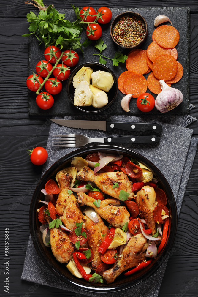 Basque Chicken Pepper Artichoke and Chorizo Saute