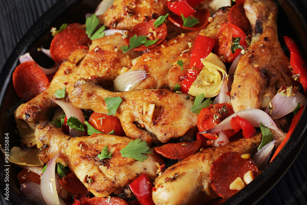 Basque Chicken Pepper Artichoke and Chorizo Saute