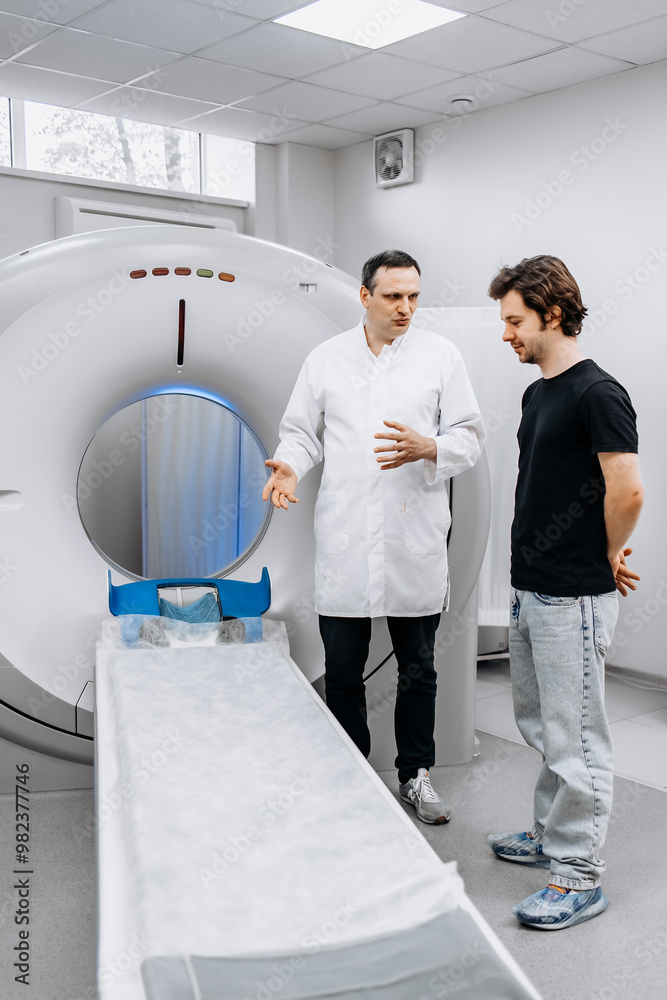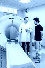 An MRI machine is positioned in a hospital, showcasing advanced imaging technology. This essential equipment is crucial for detailed diagnostics, reflecting the hospital's commitment to quality patien