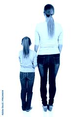rear view of young woman and her daughter