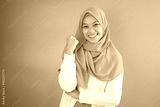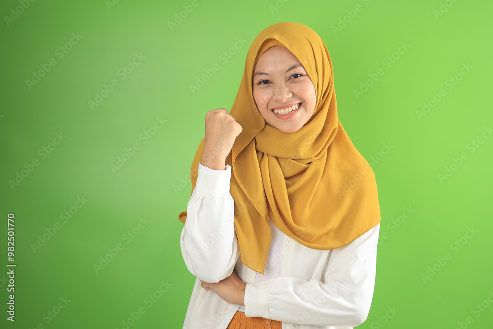 Young Asian Muslim Doing Winning Gesture Celebrating Fist Saying Yes