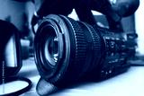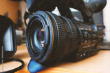 The video camera lens close-up with a removed lens hood