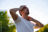 Young man having hot flash and sweating in a warm summer day