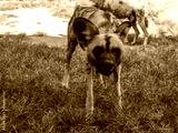 African wild dog Lycaon pictus aka painted dog or Cape hunting dog close up portrait