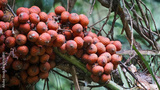 Ripe rattan fruit (Manau, hoe, jernang, buah ular, Littuko) on the tree. The rattan fruit is edible, the texture is like lychee fruit