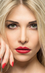 Close-up portrait of sexy woman lips with red lipstick and red m