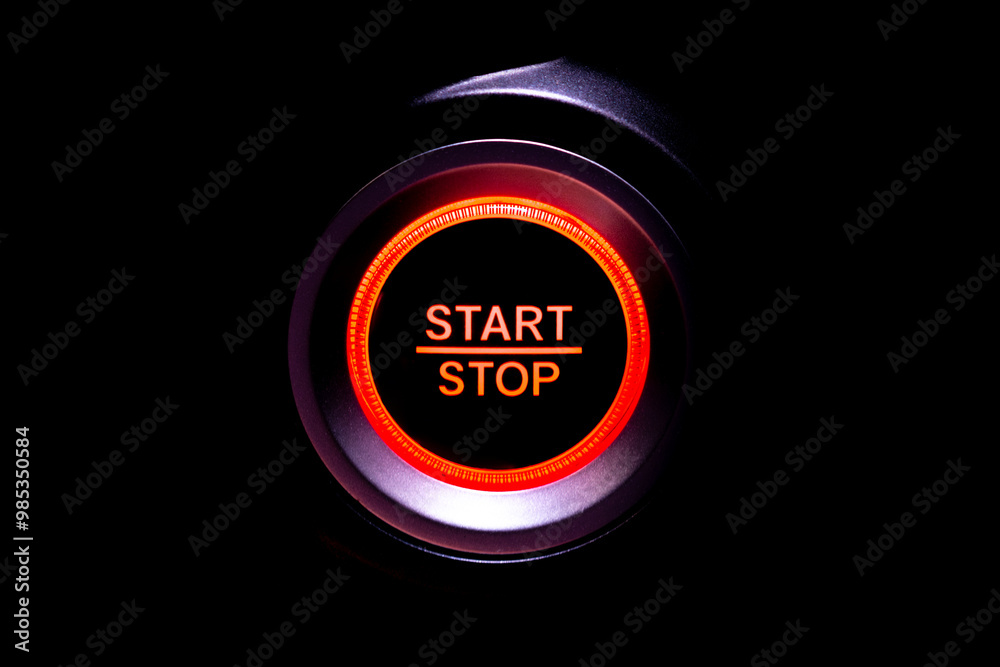 he driver's hand is pressing the car start button. Concept of transportation and technology