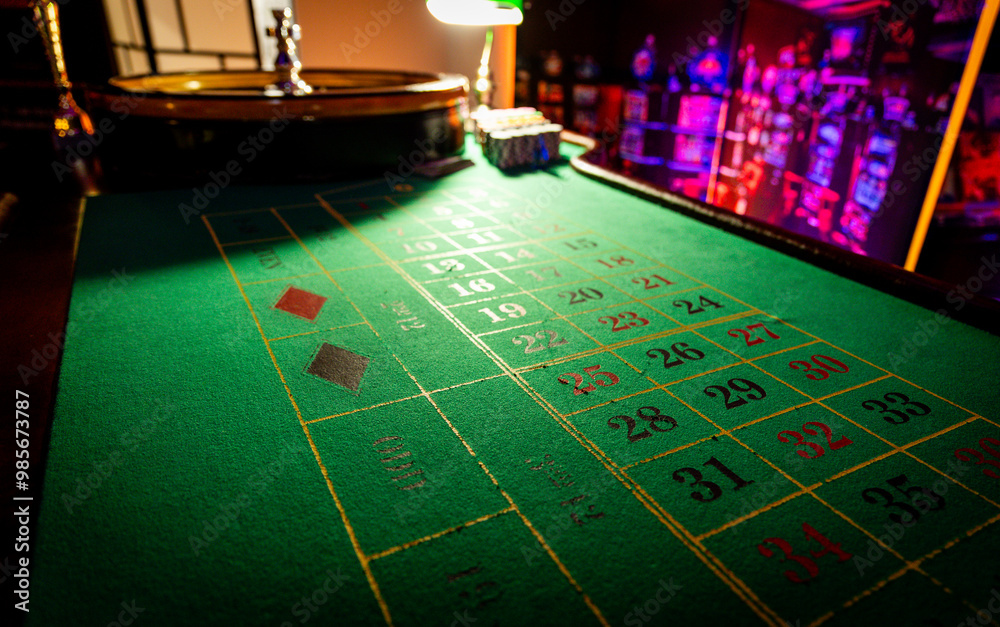 Casino roulette table waiting for players and ready to place bets