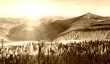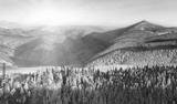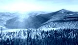 Beautiful panoramic landscape in the winter mountains at sunny day.