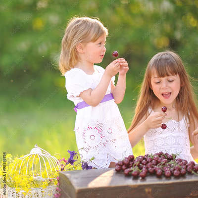 portrait of two girls of girlfriends on a summer nature