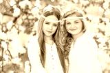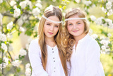 portrait of two girls of girlfriends on a summer nature