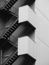 Architecture details Fire escape Modern building exterior Stairway Lighting monochrome