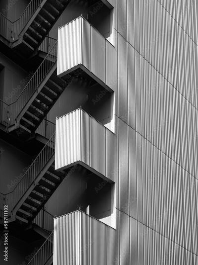Architecture details modern building exterior stairway shade shadow lighting monochrome