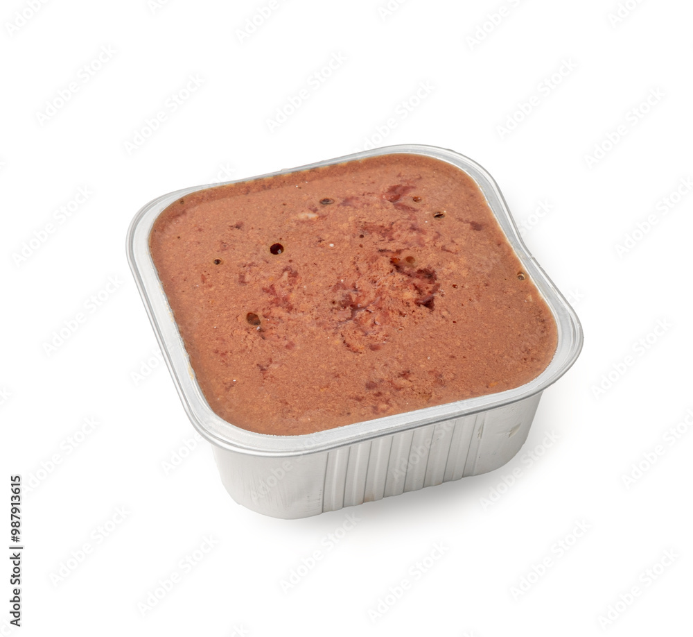 Pet Food in Metal Packaging Isolated, Wet Food for Cats, Dog Canned Pate, Open Pet Food on White