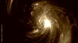 energievoll hell strahlender Stern im Universum, Weltall, Galaxie, funkeln, Sonne, Glühen, Glitzer, Cosmos, Wissenschaft, Forschung, Technik, Science Fiction, goldgelb, schwarz