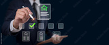 Businessman selecting real estate document with virtual interface