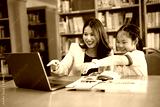 Teacher Helping Young Student with Schoolwork in Library. A teacher guides a young student with schoolwork in a library setting, focusing on personalized learning and academic development.