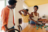Cooking and playfulness: Brazilian girl having fun making brigadeiro with her parents